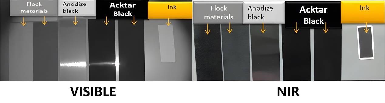 图 2:Acktar 黑色涂层与传统黑色涂层在红外波段遮光性能的视觉对比。