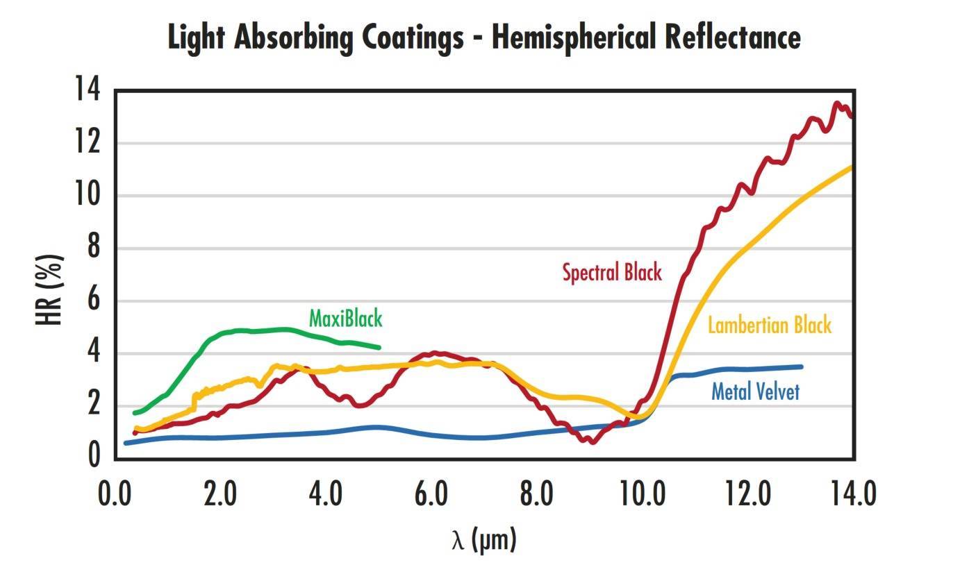 图 5:Acktar 黑色涂层在特定波长波段的反射性能。