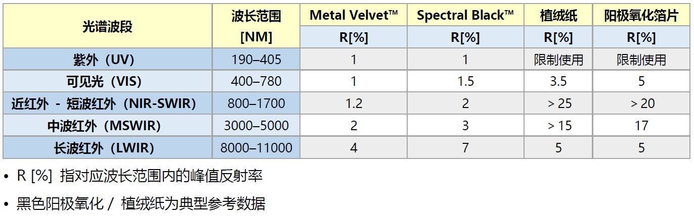 • Acktar:从极紫外(EUV)到远红外(FIR)均保持极低的反射率。