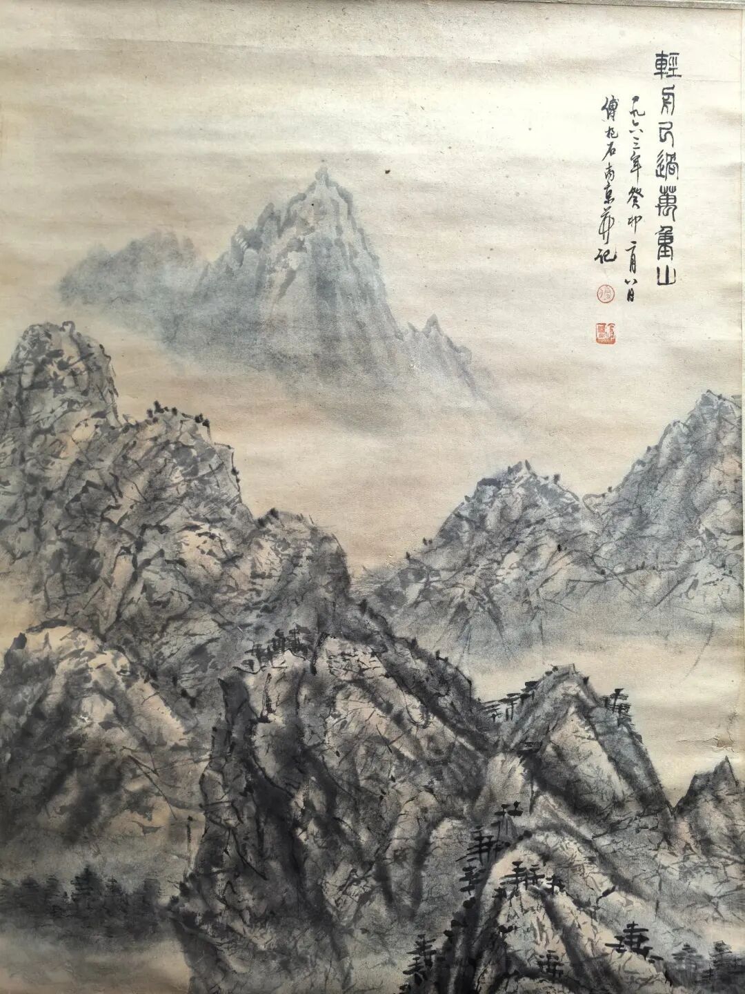 这画最戳人的,是那种“再难也敢闯”的劲儿。傅抱石自己爱喝酒,画到微醺时笔下更疯,可这疯里藏着清醒——他知道人生如逆旅,但只要心里有“轻舟”,再重的山也能“甩”在身后。现在看这画,就像听个老朋友拍着肩膀说:“别怕,往前冲,回头看,万重山早成风景了!”