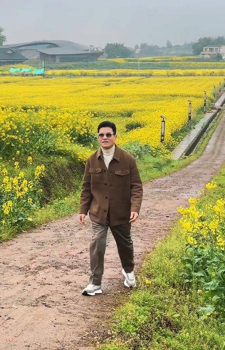 当天的乡下田野里开满了金灿灿的油菜花,泥土铺成的小路坑坑洼洼,周围都是朴素的田园风光。
