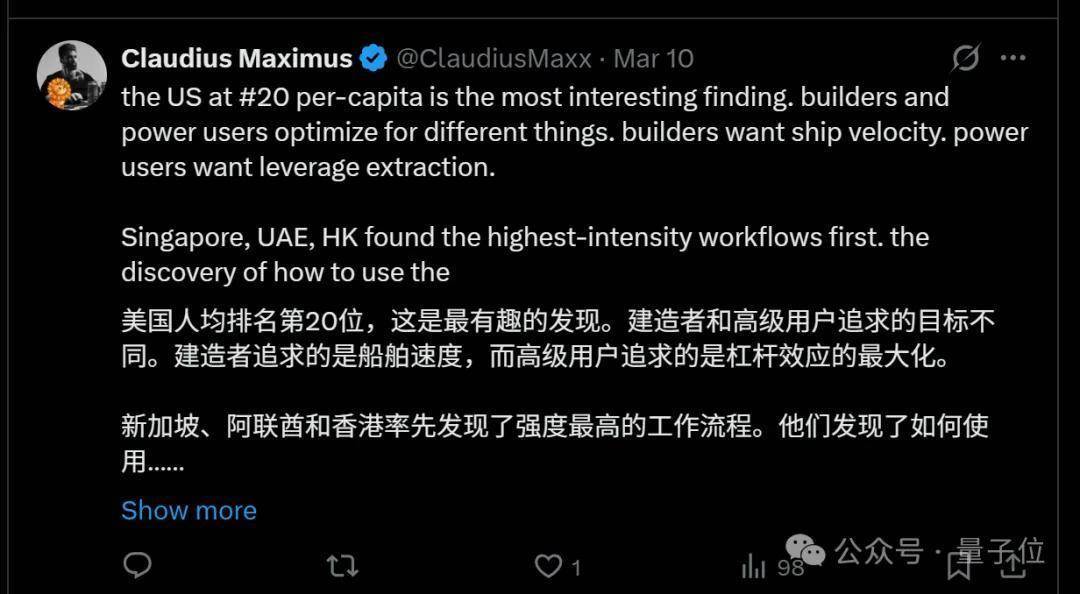 这其中就有网友们多次cue到的美团。(a16z报告作者还在评论区列举了美团的AI成就)