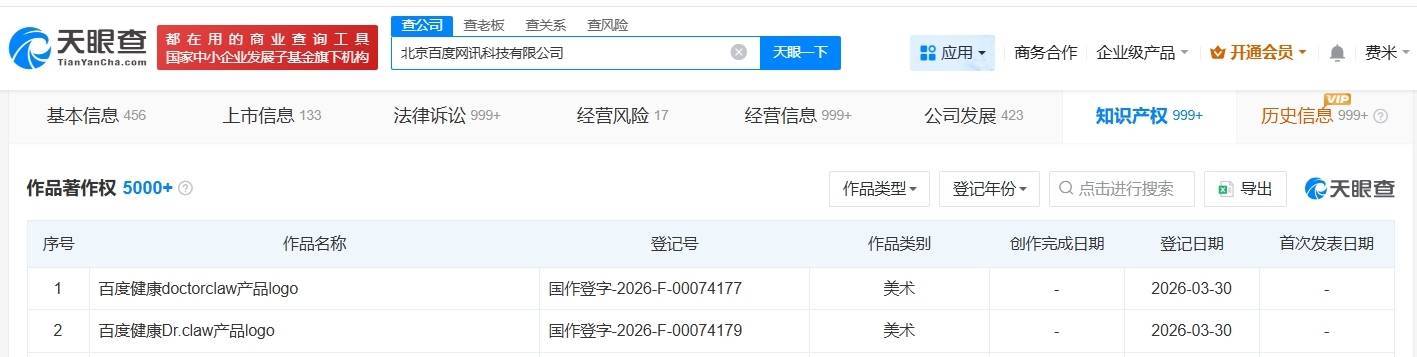 南方财经4月1日电,天眼查知识产权信息显示,近日配资平台查询网站,北京百度网讯科技有限公司登记“百度健康doctorclaw产品logo”“百度健康Dr.claw产品logo”作品著作权,作品类别均为美术。北京百度网讯科技有限公司成立于2001年6月,法定代表人为梁志祥,注册资本约134.2亿人民币,经营范围包括计算机软硬件及辅助设备零售、计算机软硬件及辅助设备批发、软件开发等,由李彦宏、崔珊珊共同持股。公开资料显示,DoctorClaw是百度健康内测的一款面向医生的专业AI智能助手。